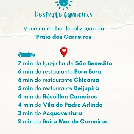 Guests of Desfrute Carneiro - Flat Premium Com Jacuzzi Privativa can visit one of the highly rated landmarks, Estrela do Mar Square, placed 3.9 km away. Other sights are Capela de Sao Benedito (2.4 km) as well as Youth Square (6 km). - ❓